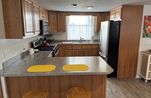 House is equipped with WiFi, YouTube TV, washer & dryer, and central air. Lakefront location is ideal for fishing, boating, swimming, and all other lake activities. Two kayaks and two paddle-boards are available for use. Other recreational amenities include foosball table, ping pong table, pool table, and dartboard in the garage. Owners live next door and are available for any questions.