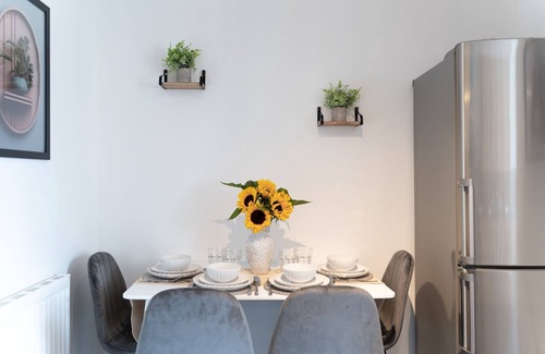 24-hour self check-in, Smart TVs, Full-fibre broadband. 2 Bedroom House with 4 Double Beds & Sofabed, Free On-street Parking available. Fully equipped kitchen.