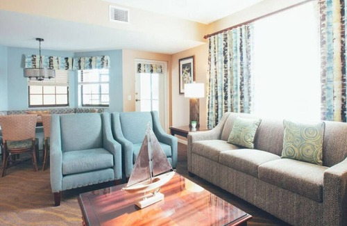 It’s no secret what’s calling you to Orlando: the theme parks, right? Those characters and coasters draw millions of excited visitors every year. But after all that fun and excitement, families can use a change of pace. Orange Lake Resort (next to the Walt Disney World® Theme Parks) is the ideal break. But you’ll marvel at its size and all there is to do. Float on lazy river tubes. Get the giggles on a mini golf course. Dive into a meal poolside. It’s tons of family fun—without waiting in line. Stay comfortably at this 2-bedroom resort. The bedrooms feature a king bed and 2 full bed, while the bathrooms come equipped with a jetted bathtub and a hair dryer. Enjoy amenities like a washing machine, WiFi, and AC. There's even a fitness room for those looking to stay active. The additional living room space includes a cozy queen bed for extra guests. Book now and enjoy everything this brilliant resort has to offer. Make family memories and family dreams come true.