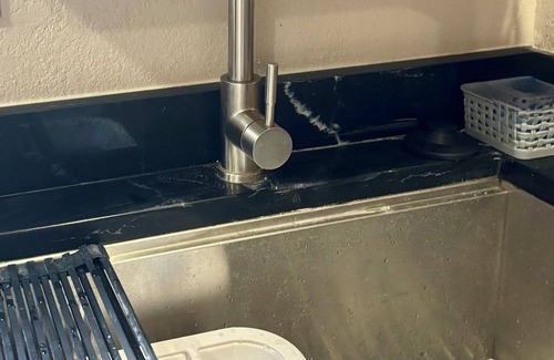 Kitchen is equipped with all the supplies you may need, pots, pans, toaster oven, coffee pot and newly acquired microwave. There's plenty of silverware to avoid using plastic and being eco-friendly. Minutes away you'll find grocery stores.