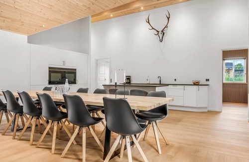 Single-family house, built in 2025. 1 km from the sea. Private: property 1'200 m2, well-kept garden. Barbecue. In the house: table football, trampoline, washing machine, tumble dryer. Parking at the house. Grocery 1 km. Golf course 17.4 km. The owner does not accept any youth groups.