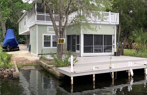 Homosassa River stilt home in secluded cove on Otter Creek. Excellent home base for boating, fishing, kayaking and scalloping. Expansive screened porch and decks for relaxing and taking in amazing sunset views. Dock your boat and have direct access to the Gulf of Mexico (no bridges). Single vessel, parallel parking to dock only. No rafting of multiple boats is permitted. Private kayak launch with two one-person kayaks and life jackets. Idyllic spot to drop a line and watch the manatees, dolphins and amazing bird life.