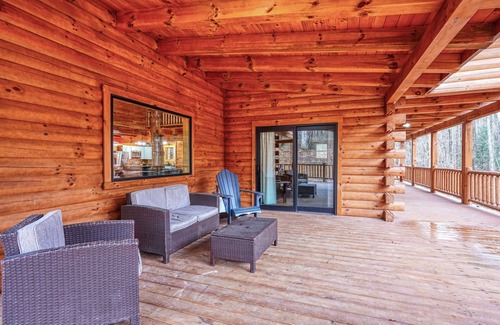 Beautifully appointed 5 bedroom, 4.5 bath lodge in the Heart of the Hocking Hills. This log home is ideal for families or multiple families to make lasting memories together! Sleeps up to 16 guests comfortably. The setting is Central to the Hocking Hills State Parks, dining, and shopping. The Hocking Hills State Forest and bridle trail is also just outside your door. Location is 2 miles to Rock House, 3 miles to Conkle's Hollow and 6 miles to Old Man's Cave. Open floor plan with 5 private bedrooms. Upstairs bedrooms each have an ensuite bath with King size bed and private balcony. Master bedroom is on the main level with private bath and King size bed. Lower level bedrooms has one private bedroom with two Queen size beds, and the other private bedroom as three twin over twin bunk beds. Lower level entertainment area has a shuffleboard table and the upstairs loft includes board games and a foosball table for family game nights! Indoor AND outdoor stone wood burning fireplaces, complimentary WiFi and satellite TV, two charcoal grills, fully equipped kitchen with stainless appliances, and private hot tub! A Hocking Hills family vacation awaits you! Four Wheel drive required to access. Lodge sits back on a long drive.