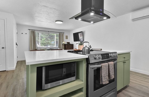 Owyhee Oasis 2 is a newly renovated duplex unit near the Boise Airport with quick freeway access. The soft decor color palette with the contrast of black and white throughout the home is a perfect mix of style and comfort. The open concept kitchen and living area is great for cooking meals while enjoying sports or movies on the tv. If you need more space, check to see if the next door unit Owyhee Oasis 1 is available!