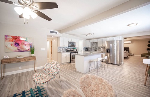 Embrace the retro-cool vibes in our single-story house! Remodeled for your entertainment, this unique house is nestled in the charming Paradise Palms neighborhood, where the iconic movie Casino was filmed. Our mid-century house features a tasteful designer interior for your utmost comfort and relaxation. With easy access to the Strip and convention center, you won't miss out on any excitement and entertainment Las Vegas has to offer. Book now for the ultimate retro-luxe getaway!