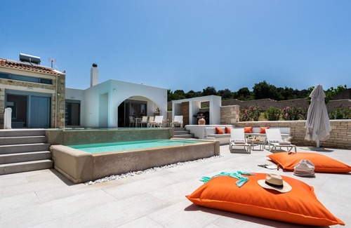 Our Panoramic Villa is located on the heights of Rethymno, overlooking a large olive grove, this house offers an exceptional view of the fortress and the bay. This new villa is built traditionally in local stones and incorporates the latest technologies.