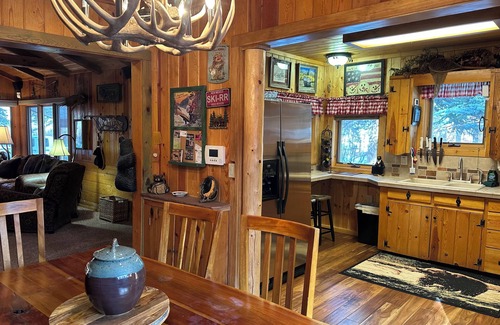 The kitchen has everything you need to make a meal during your stay. If you don’t feel like cooking, that’s ok, because the cabin is within walking or biking distance to your favorite Red River restaurant and shops! Not only is it close to those guest favorites, but it’s ½ mile to lift 1 and 1 mile to the main lift!!!