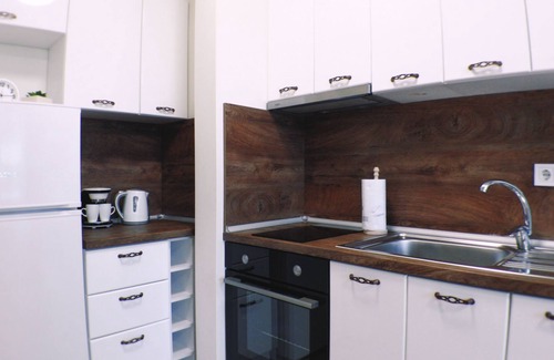 Great opportunity for a short-term accomodation with included free of charge underground parking. The apartments are fully furnished with custom furniture, with large "French" type windows with German 7-chamber PVC windows KBE 88 with triple glazing Saint Gobain with optimal glass thikness. The huge windows are designed to take full advatage of the sun's rays and provide planty of light and heat, providing excellent energy efficienncy to any apartment. In each apartment there is a bathroom, kitchennet, refrigerator, air conditioning, LCD TV, coffee machine, kettle, iron, hair dryer.