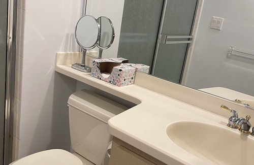 Guest bathroom with shower is located beside the guest bedroom (two twins).