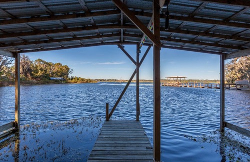 Experience Lake Rousseau! Fishing the lake, you can catch bass, brim, catfish and other freshwater fish right from the dock or fish from the canoe. Bring your boat! The covered boathouse has two stalls where you can dock and tie up. You can put your boat in at Goldendale public boat ramp just a short run to our dock. The lake has a navigable channel, so exploring with the canoe, two kayaks to use at your own risk or your own boat is a breeze. Travel east ups the Withlacoochee River to the Rainbow River and experience old Florida, nature at its finest! If you boat west there is a vast array of wildlife, coves and Inglis dam, truly a beautiful experience and directly accessible from our dock.