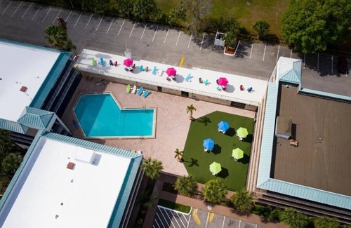 A convenient European Plan condo-hotel surrounded by restaurants and tourist attractions in the heart of Kissimmee's shopping area. Its excellent location provides easy access to Orlando's amusement parks, such as Walt Disney World Resort®, Universal Orlando Resort®, Sea World®, Animal Kingdom®, and Epcot®. Our 192 comfortable rooms are excellent to rest and recharge after a fun day at the parks. They have a dining room, refrigerator, coffee maker, microwave, cable TV, and air conditioning or heating. Enjoy the pool with sun lounges, a solarium, and a tennis court, and keep your fitness routine at the gym. The hotel offers laundry facilities, free parking service, and WiFi. Each of its three buildings has elevators. Our hotels have international health and safety certifications through our Safe Guest Program®, ensuring a safe stay.