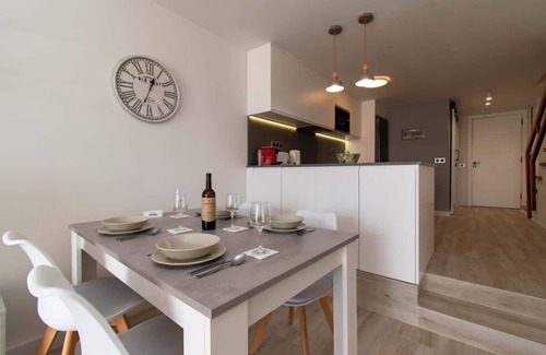 Parque Santiago II 79 - Two-Bedroom Duplex is located on the sunny side of this popular complex in Playa de las Americas, Tenerife. This apartment spans across the ground and first floors, offering a comfortable and convenient stay. The terrace boasts two sun loungers, a patio table, and chairs, creating the perfect spot for sun worshippers to enjoy a great sunbathing experience without venturing far. Moreover, the terrace features a gate that leads to the path connecting to the pool area, making it an ideal choice for families with young children.