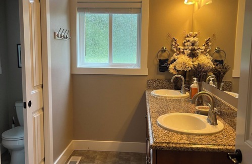 We provide a cozy waterfront getaway with modern amenities to suit your every needs. Unwind where the forest meets the beach. A private retreat where you’ll wake up to ocean waves crashing and birds singing. Enjoy coffee on the deck looking out at Vancouver Island. Take a walk down hill to the local beach for a stroll. You’ll have access to the entire downstairs with a large kitchen and propane fireplace.