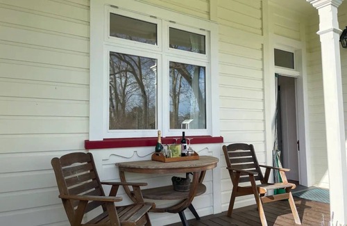 Built in 1910 for the Galdstone school master, this gorgeous restored villa offers a guest wing with a super king sized bed (can also be made up as two singles), lounge, luxurious bathroom, private deck, heat pump/air con wifi, kitchenette and stunning views. Bikes and a pool available (summer months).
