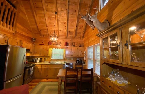 True cabin experience with a wood burning fire place and fire pit. Spacious. Our cabin is truly peaceful and secluded.
