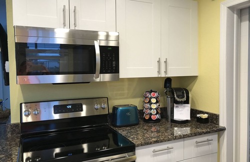 Summary: Compact but perfectly appointed unit. The kitchen is thoughtfully stocked with everything we needed, and we cooked and ate all of our meals here. The welcome drinks and snacks provided were a nice surprise. I didn't realize there wasn't a dishwasher, but it was no trouble to hand wash everything. The bathroom off the kitchen isn't terribly private since it just has a barn door. Overall, well maintained, clean, and a short walk to the beach. Seems very professionally managed. We appreciated having use of the beach equipment since we flew in from out of state. We found plenty of shark teeth, so mission accomplished!