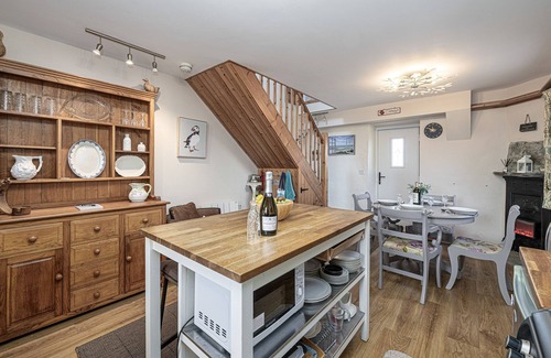 A well-equipped kitchen/Diner with microwave, gas hob, electric oven, toaster, kettle, Nespresso coffee machine, fridge/freezer washing machine, (the tumble dryer is nearby in the kingsize ground floor double room) pots & pans etc. There is also a small TV in the kitchen diner. Freezer in downstairs bathroom