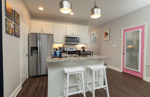 Cook with ease in the modern kitchen, complete with all the essentials—cookware, dishes, coffee maker, and stainless steel appliances. Perfect for a quick breakfast or a full family dinner.