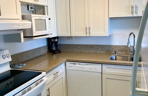 Fully equipped, clean, updated and comfortable downtown Kona Condo on Alii Drive for your vacation convenience! 2 bedroom sleeps 4 comfortably with 2 full shower bathrooms, washer/dryer in unit, fully decked kitchen with appliances, utensil, and serve/table ware. Hair dryers in bathroom, beach gear (snorkel gear, beach chair, umbrella, pool noodles, you name it!) in closet, this is well prepared for your comfortable vacation! Airy Lanai is perfect for you to enjoy your morning coffee. Close to restaurants to walk to, or just strolling down Alii drive checking out places. Unit is Airconditioned and have garage parking underground should you need it. Lots of Aloha and we hope you have a fantastic stay!