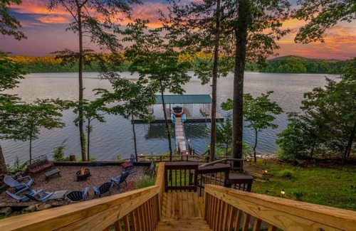 Enjoy a relaxing vacation at Parson Shores Lodge on Norris Lake. This pet friendly 3 level townhome is just 50 steps to the lake and the large covered dock with swim platforms. The home comfortably sleeps 8 people in 3 bedrooms. Spend the day relaxing swimming or fishing off the dock, or paddleboard along the peaceful shoreline. Enjoy evenings around the lakefront firepit, or play games on the lighted covered deck and watch the moon reflect off of the calm waters of Norris Lake. This 1600 square foot townhome offers all of the comforts of home, and all of the fun of being at the lake! Norris Lake and the surrounding area offers something for everyone of all ages - boating, kayaking, swimming, fishing, hunting, hiking, golfing, horseback riding, with Knoxville and Gatlinburg just an hour or so away.