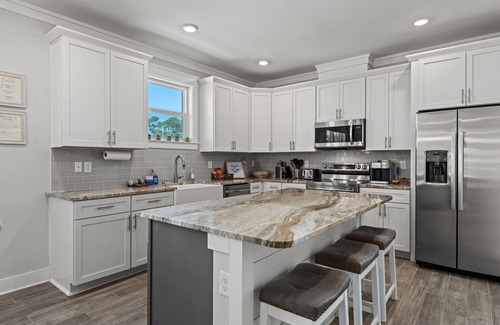 This 3 bed / 3.5 bath retreat is thoughtfully appointed, with a well-stocked kitchen, Smart TVs in every room (with Hulu + Live TV, Disney+ & ESPN+), and plenty of extras to make your stay feel like home.