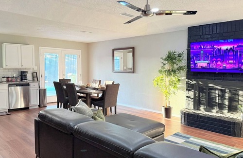 Experience full-size regulation Pickleball unlimited game on a private patio! This 6 bedrooms 3 bathrooms spacious home can sleeps up to 20 comfortably and is just minutes from the Stockyards, TCU, Dickies Arena, and more. It offers top-tier amenities, including Pickleball (balls and paddles provided), a hot tub, mini-golf, outdoor BBQ dining, a fully stocked coffee bar, high-speed WiFi, Smart TVs with Netflix, and premium bedding for ultimate comfort. Perfect for any group getaways!