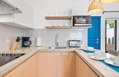 Pineda Suite #101 Ground floor level unit Fantastic location / Just 2 blocks from the Malecón Hotel type service / Daily cleaning / Amenities Private parking As you step into the studio apartment, you'll be greeted by a modern and thoughtfully designed interior. The fully equipped kitchen is a culinary enthusiast's dream, featuring a refrigerator to keep your groceries fresh, a toaster oven and microwave for quick meals or snacks, and a coffee maker for your daily caffeine fix. The kitchen also includes a stylish bar with highchairs, creating a perfect space for enjoying meals or working on your laptop. The main living area is furnished with a comfortable sofa bed, allowing for additional sleeping space when needed. You'll find a TV conveniently placed in the bed area, providing entertainment for cozy evenings in. The studio apartment also boasts a small backyard with a delightful table and chairs, perfect for enjoying al fresco dining or simply relaxing with a book. And for moments of pure relaxation, a hammock is thoughtfully included for your enjoyment. The full bathroom is tastefully designed, featuring modern fixtures and a refreshing shower. Fresh towels and essential toiletries are provided for your convenience. Our guests have access to the rooftop with breathtaking views of the city's sunset. Perched atop the building, it provides an ideal vantage point to witness the enchanting panorama of La Paz as the sun dips below the horizon. As you step onto the rooftop, you'll find a spacious and well-designed area dedicated to outdoor cooking and entertainment. The BBQ area is thoughtfully arranged with high-quality touch and ample preparation space. It is equipped with all the necessary tools and utensils to ensure a delightful culinary experience. The rooftop also has a guest bathroom, and we can provide a cooler for your refreshment beverages. To use the BBQ grill, you must book it in advance with our staff. BBQ grill works with charcoal, and it must be purchased by our guests. We give our guests the privacy they need but we are always in touch by messages of phone calls. Before their arrival we provide them with recommendations, guidance and everything they might need to make their stay more comfortable. The Malecón of La Paz is one of the icons of the city. For locals and visitors, the boardwalk is the ideal place to meet, walk, exercise, or simply enjoy the dazzling colors that the sunsets offer. Kayaking and stand-up paddle tennis are some of the best activities to do in La Paz because they allow you to enjoy the crystal-clear waters. I recommend renting them directly at the Harker Board, located on the boardwalk. Transportation options available in La Paz include private transportation such as Uber, DiDi although sometimes there are not many options available, we suggest using the In Driver app. Taxis and bicycle rental services are also a good option. The building has a private gated parking, you will be provided with a control clicker upon arrival to open the electric gate and you can only use the designated spot. *In case you lose or damage the gate control clicker, you will be charged with a fee. One of the highlights of this studio apartment is its proximity to the waterfront Malecón of La Paz. Within a short walking distance, you can immerse yourself in the vibrant atmosphere of the city, with its charming shops, restaurants, coffee shops and scenic views. Whether you're seeking a leisurely stroll or an active day by the water, this prime location offers endless possibilities for exploration and enjoyment. To enhance your stay, daily cleaning service is included, ensuring that your living space remains fresh and immaculate throughout your time in La Paz. In summary, this new studio apartment combines modernity, convenience, and comfort. With its rooftop views, gated parking, fully equipped kitchen, delightful backyard, and proximity to the waterfront Malecon, it provides an ideal retreat for experiencing the beauty of La Paz while enjoying the amenities of a well-appointed apartment.