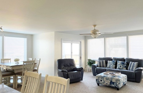 Enjoy a spacious, open floor plan, convenient single level living and generous windows overlooking Silver Lake Harbor.