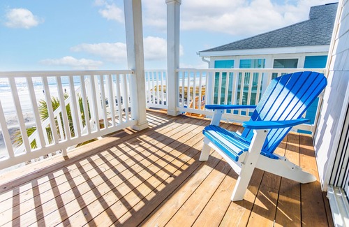 Outside you'll find an oceanfront covered porch furnished with rocking chairs, ocean side sun deck, and covered parking on both sides.