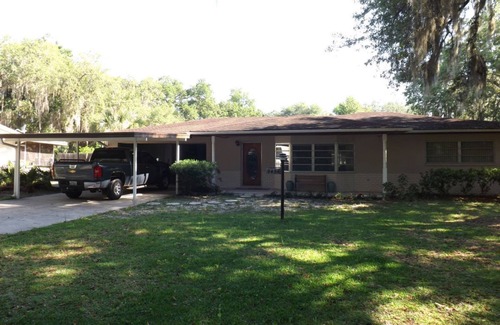 2 bedroom- 2 bath - washer, dryer, carport, king bed, 2 single beds--queen couch bed. 3 t.v,s with wifi and cable. Living room, dinning room, family room, and kitchen give you plenty of room to relax. Also a screened in area around the pool and screened patio for outdoor activities. Close to the beautiful bike trail for riding, walking, jogging or bird watching. Access to large lake from back yard. Dock to fish from. close to shopping . 13 miles from 75. 20 minutes away from Homosassa and Crystal River home of manatees and scalloping, and the springs.