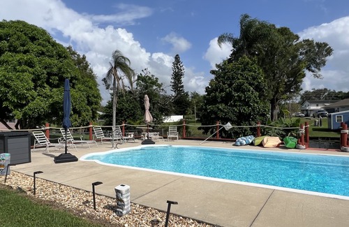 Kick back and relax at this peaceful newly renovated pool home with direct access to Lake Huntley. Bring your boat where you can drop in at the boat ramp 100' away. Feel free to tie up on the dock out back along the waterway. Enjoy the oversized swimming pool surrounded by a spacious deck with plenty of lounge chairs, umbrellas, and seating. There are three kayaks available for your pleasure. Located minutes from downtown Lake Placid where you will find supermarkets, shopping, and restaurants.