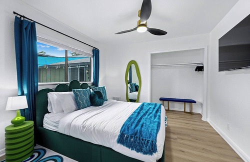 Side A & B each offer a living room (with a 76" TV and access to the backyard and pool), kitchen + dining area, and the bedrooms / bathrooms as described below and listed under LAYOUT. The kitchens are fully equipped with the essentials needed to whip up a memorable meal. You’ll also enjoy complimentary WiFi, coffee, concierge services, and more.