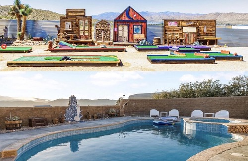 Pool, Spa, Suana, Theater, MiniGolf & Pet-friendly is located in Yucca Valley. Pool, Spa, Suana, Theater, MiniGolf & Pet-friendly provides accommodation, featuring Air Conditioner, Pet Friendly, Pool, among other amenities. This Villa features Air Conditioner, Pet Friendly, Pool, to make your stay a comfortable one.