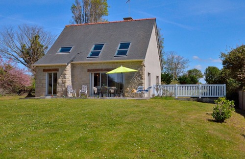 "Port Morvan", 3-room house 100 m2 on 2 levels. Beautiful furnishings: entrance hall. Living/dining room with dining table and TV (flat screen). Exit to the garden. 1 room with 1 french bed (140 cm, length 190 cm). Exit to the terrace. Open kitchen (oven, dishwasher, 3 ceramic glass hob hotplates, toaster, kettle, microwave, freezer, electric coffee machine). Bath/shower, sep. WC. Electric heating. Upper floor: 1 room with 2 beds (90 cm, length 190 cm), 1 french bed (140 cm, length 190 cm). 2 terraces, west facing position and, east facing position. Terrace furniture, barbecue (portable), deck chairs (2). Facilities: washing machine, dryer, baby cot for up to 2 year olds (extra), hair dryer. Internet (WiFi, free). Please note: non-smoking house. Maximum 1 pet/ dog allowed. Smoke alarm. Offer by a private individual according to Art. 155, IV of CGI.