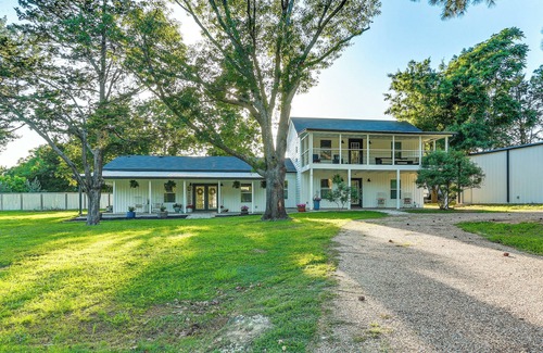 Only a stone's throw away from Lake Texoma, this beautiful farmhouse-style vacation rental in Pottsboro is perfect for a family getaway. Upon arrival, the 3-bed, 3.5-bath home's wraparound patio emerges from behind mature trees, inviting you to enjoy your morning coffee or an evening BBQ. A renovated open-concept living area awaits inside, complete with a gourmet kitchen. After settling in, explore the surrounding fishing community or dive into the lake from Mill Creek Resort and Marina!