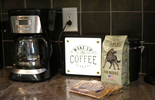 Fully Stocked Kitchen: Our kitchen has everything you need—including all your baking essentials and a supply of Black Rifle Coffee to start your day strong.