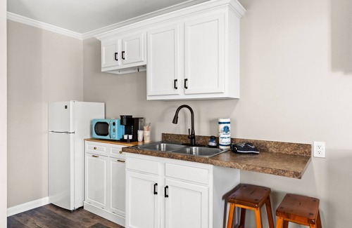 Units includes two double beds, small kitchen sink area with dishes and dining space for 2, microwave, mini fridge, RoKu TV, Keurig coffee maker, all linens (not beach towels) and private bathroom-Note** Not all units look the same!! Guests have access to 2 pools on the property and a lounging patio, BBQ grill and outdoor games. The beach and boardwalk are about 2 blocks away-just a short walk! Restaurants are within walking distance along with local shops and must see attractions. Pets are not allowed in these rooms.