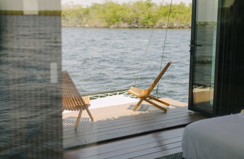 Welcome to Stay Ombi, a fully off-grid escape on the gentle waters of Buttonwood Sound in the Florida Keys. Ombi offers three bungalows, crafted to immerse you in nature - without compromising on comfort. Solar provides electricity for the vessel with a backup generator just in case, fresh water is carefully prepared before each stay, and all grey water is contained in environmentally responsible systems. Guests are transported to the bungalow by boat (10-minute trip), which will be pre-stocked with all of your requested comforts. We can arrange for daily food delivery from a nearby restaurant or we will work with you to plan food you can easily prepare in the provided microwave. We also welcome guests to bring food, snacks, beverages or additional items to make your stay more comfortable.