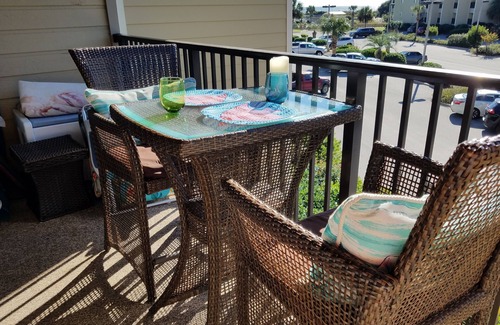 Our villa is on the second floor of the C-building and includes: beach chairs, umbrella & wagon (PLEASE rinse chairs, beach wagon and toys at showers located by the pool to reduce sand brought into the Villa) , books, DVDs, board games, USB outlet, wine chiller, 55" Smart TV in living room, cable TV, WiFi internet, HDMI cable (ready for your gaming system) 40" TV in bedroom, Keurig coffee maker, kitchen with under counter dimmable lighting, ceiling fans in bedroom and living room, double ceiling fan on patio and bar stools on the patio to enjoy beach view.