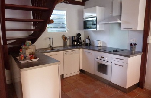 Fully air-conditioned, the accommodation is ideal for families, couples and groups of friends. A bedroom with a double bed with adjoining bathroom, a bedroom with 2 single beds upstairs and a studio with 2 double beds (one on the mezzanine) and adjoining bathroom will allow you comfortable accommodation up to 8 people. You are 7 minutes walk from the beach of Petite Anse, a small supermarket and the Fredo restaurant and 10 minutes by car from the beaches of Grande Anse and Diamant. You can enjoy all the activities of the island (diving, boat, jet-ski, fishing, hiking, beaches, surfing, kite-surfing, etc.) and the surrounding shops (golf des 3 îlets, casino, Fort maritime shuttle of France, Sainte Luce seaside restaurants, etc.)