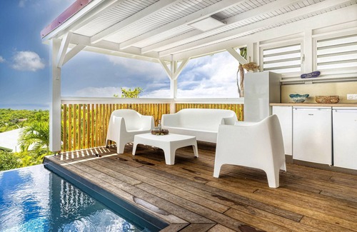 Enjoy the sunset on the terrace with its view of the Saintes, Dominica and Guadeloupe.
