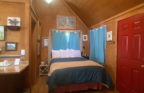The Shack (#4) is a private 2-person cabin as part of a beautiful bed & breakfast. This cabin includes a comfortable queen bed, full-sized bathroom with a tub/shower, an efficiency kitchen and dining area. The kitchen includes a mini-fridge, a microwave, a coffee pot and a hot plate. Dishes and cookware are provided for you.