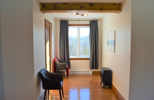 Situated on 3.8 acres of private and peaceful terrain, Chalet D’Acres Rouges will quickly become your favourite escape from the city, no matter the season. Only a 1-minute drive from the front door to the ski/snowboard slopes of Val-Saint-Côme, the cottage is the perfect place to come home to after an exhilarating day on the slopes, or any other activities in the area.
