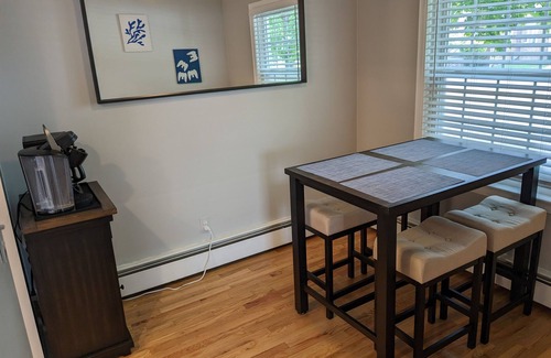 The dining room's coffee bar features K-cups and drip coffee free for guests. Enjoy your coffee or your fresh meal at the and 4 seat high top table.
