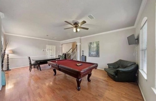 No Events of any kind allowed. Perfect family get away in this resort style home in Northwest Houston. Located in a very safe quiet neighborhood 20minutes from downtown. Private enclosed pool with spa, outside tv with backyard deck, pool table and multiple tv's inside. Very spacious home with two living rooms, an entertainment room, 4 bedrooms 2.5 baths. Huge kitchen with open concept..no events