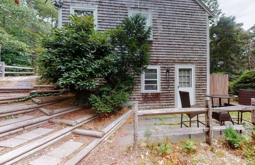 Enjoy a peaceful vacation in a quiet home located in a private oceanside neighborhood in Eastham. Enjoy the wooded yard surrounded by rhododendron. After a day at the beach, refresh yourself in the outdoor shower. Our home has two bedrooms plus a sleeping loft and can entertain multiple families. The house is three levels with a sleeping space on each level. Enter through the main level which has one full bath, a kitchen with dining area, living room with Smart TV, along with one bedroom which has a twin over full bunk bed and an additional twin. Enjoy your morning coffee or evening glass of wine on the upstairs deck, or in the yard's quiet sitting area. Upstairs is a spacious and private sleeping loft with two twin beds. On the lower level you will find another small sitting area with TV, and a master bedroom with a queen bed and full bath. Walk out to the backyard from the small sitting area or enjoy the small walk out patio from the master bedroom. There is also a utility room with washer and dryer located on the lower level.