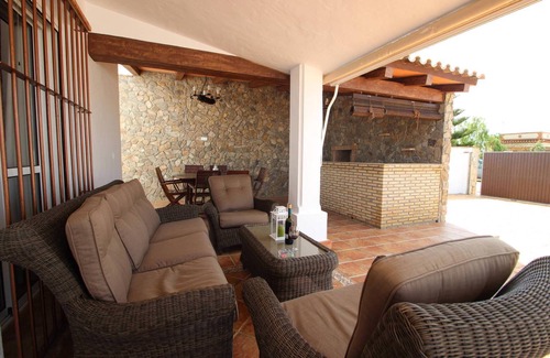 All windows are fitted with fly-screens. The covered terrace with awning is nicely furnished with a wooden table and chairs, chill-out sofa and armchairs. Recently the owners added a beautiful, covered barbecue area with a bar and small outdoor kitchen.