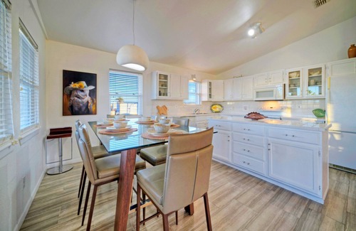 Driving into the area, you'll pass the ship channel, catch a sunset view if the timing is right, and pass the dog park and city pool. Also nearby are the nature preserve, birding center, marina, and dozens of places to shop, eat, hear live music, and experience Port A. But the best part about the location is it's only a golf cart ride away from the beach!