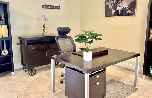 ✓ An office work area with a desk and table, perfect for focused productivity.