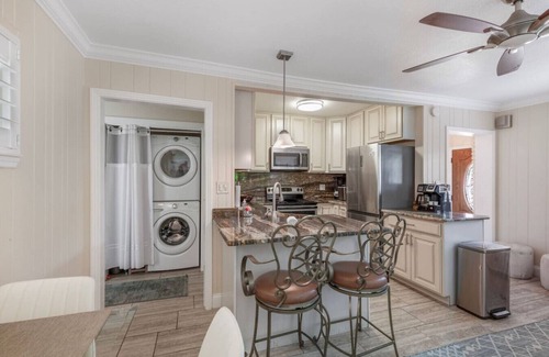 INTERIOR LAUNDRY W/ WASHER AND DRYERS. PERFECTLY LOCATED JUST MINUTES FROM DOWNTOWN CLEARWATER, AND MINUTES FROM DOWNTOWN DUNEDIN. ENJOY SUNSETS BY THE INTERCOASTAL, 1 BLOCK AND A HALF AWAY. ENJOY RELAXING DAYS IN THE BEAUTIFUL, TUSCANY INSPIRED PRIVATE COURTYARD.